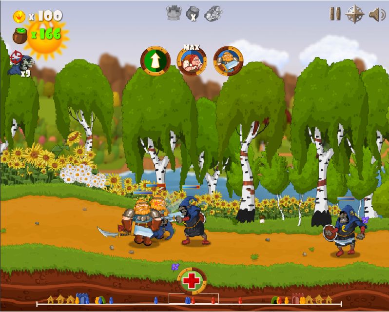 Представленная вашему вниманию онлайн игра Боевой клич доступна бесплатно. Она является довольно качественной и необычной стратегической флеш игрой для детей. Здесь нет примитивных сражений, победу в которых можно одержать только числом, а не умением. Также в игре нет продолжительных позиционных противостояний, в которых побеждают за счёт терпения и целенаправленного наращивания военного потенциала. Невзирая на то, что аркада Боевой клич разработана только на английском языке, для игрока не составит труда разобраться в её особенностях. Играть можно без регистрации.
