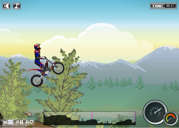 Невероятно красивая и захватывающая онлайн игра Фестиваль мото триала 2 предназначена для мальчиков, которые любят поучаствовать в зрелищных гонках. Оседлайте своего двухколесного железного друга и отправляйтесь на трассу! Флеш игра состоит из двух десятков уровней, в каждом из которых игроков ждут разнообразные сложности: крутые обрывы, трамплины, овраги и будто вспаханные взрывами бомб участки дорог. Продемонстрировать свои способности в рискованных гонках на мотоциклах можно бесплатно и без регистрации. Забудьте о педали тормоза! Только высокие скорости помогут достичь победы на фестивале мото триала!