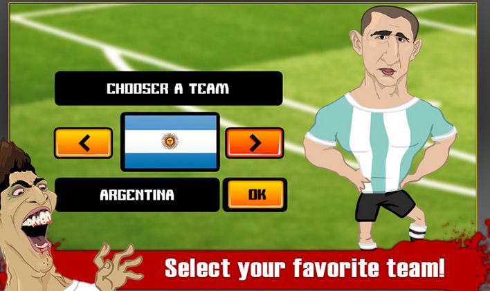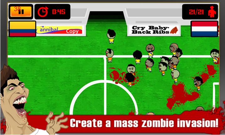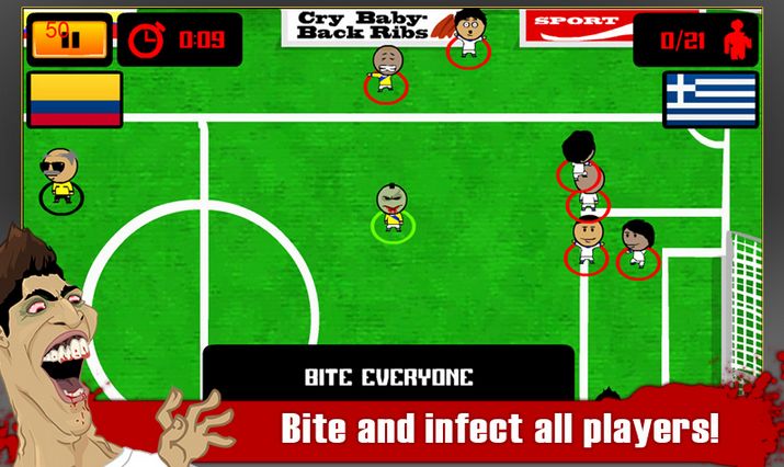 Весьма необычная онлайн игра Кубок мира зомби просто обязана стать для мальчиков веселой альтернативой привычных спортивных флеш игр. Посетите огромный стадион в составе собственной футбольной команды, созданной без регистрации, и покусайте как можно больше спортсменов, превращая их в зомби! Единственный футболист, которого стоит избегать – вратарь. У него припрятано ружье, с помощью которого он может снести вам голову. Раздобудьте кубок Fifa абсолютно бесплатно, нейтрализовав команду противников!