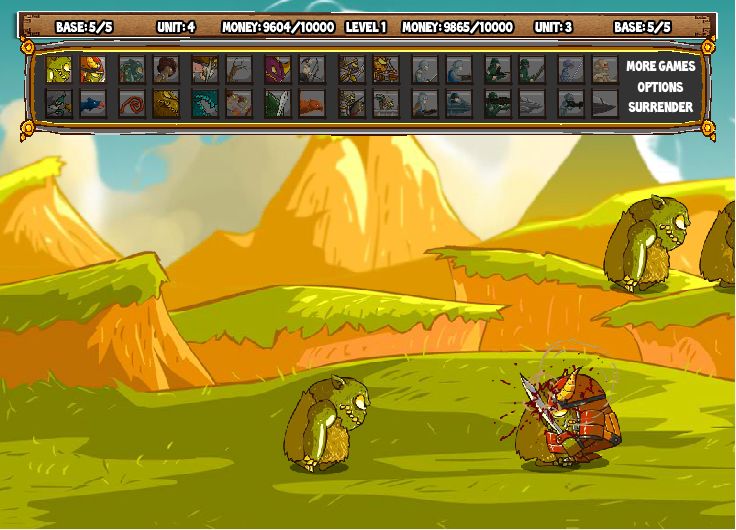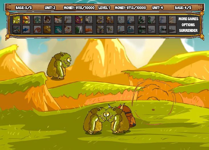Крутая онлайн игра Драка монстров представляет собой линейную стратегию, где вражеские армии чудовищ борются друг с другом. Эпическая флеш-игра для мальчиков позволит очутиться в виртуальном мире монстров и завоевать чужое королевство! В увлекательной игрушке бесплатно и без регистрации изначально будут доступны только наземные воины. Однако по мере прохождения миссий появятся воздушные и «прокачанные» монстры с мощнейшим оружием. Все улучшения доступны в игровом магазинчике за выигранное золото.