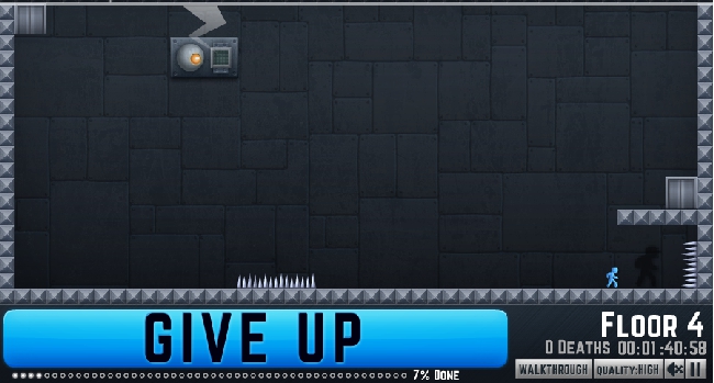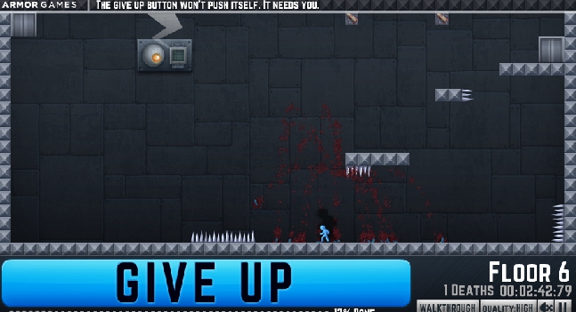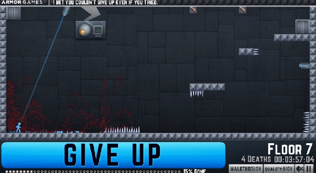 Игра Сдавайся 2 – это увлекательное флэш-приложение, которое понравится как взрослым, так и детям. Ловкость рук и никакого мошенничества, а также акробатические трюки, десятки разнообразных препятствий, лазеры и бомбы, пушки и гранаты, направленные на главного героя – все это делает геймплей невероятно динамичным и интересным. Игрок должен обойти все препятствия, получить как можно больше призовых очков, сделать своего героя неубиваемым во всех смыслах и получить заслуженный главный приз.