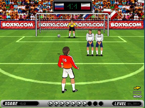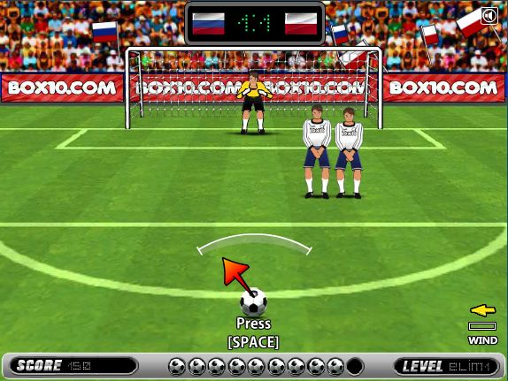 Игра Штрафной удар — футбольный онлайн симулятор для мальчиков. Вам предстоит пробивать штрафные удары. Сделать это гораздо сложнее, нежели может показаться. В реальной жизни футболист полагается на свою силу удара и умение просчитывать то, как же будут отбивать удары оппоненты. В симуляторе тот же принцип, но здесь еще больше выражена физика, предполагающая то, что вам удастся рассчитать все так, чтобы мяч не просто попал в ворота, но еще и смог пробить защиту, управляясь лишь компьютерной мышкой. Этот делает симулятор не просто увлекательным и интересным, но еще и полезным, поскольку тренирует визуализацию траектории движения, а это весьма полезный навык и умение.