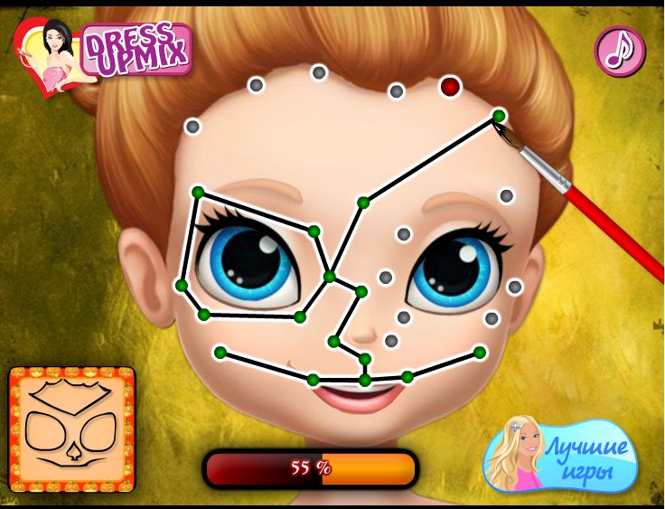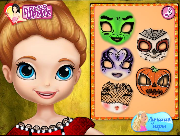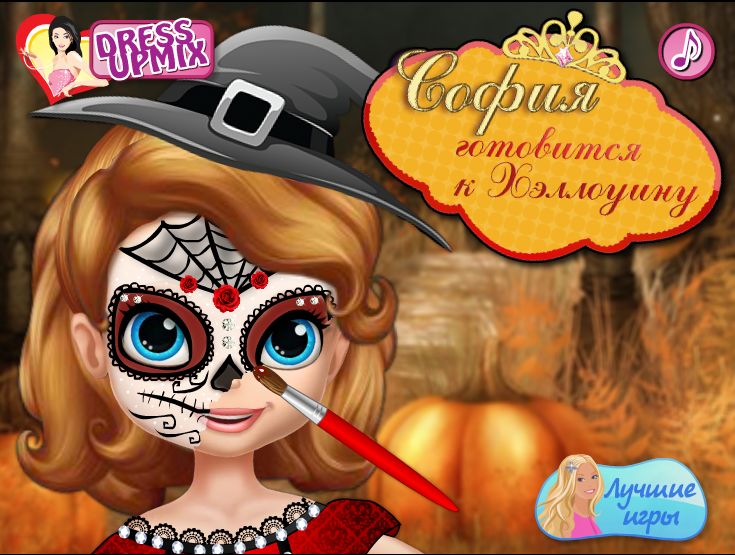 Милая очаровашка София готовится к Хэллоуину, и это великолепный шанс для девочек еще раз помочь принцессе! Выберите подходящую на ваш взгляд маску и в режиме онлайн раскрасьте личико принцессы по схеме. Все краски и шаблоны станут вам доступными бесплатно и без регистрации. Создайте у принцессы настроение в духе Хэллоуина, ведь от этого будет зависеть, как пройдет ее праздник!