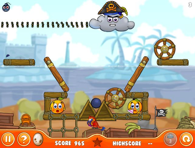 Что может быть общего между апельсином и пиратами? Онлайн игра Спрячь апельсин – пираты объединяет самых неожиданных персонажей. Рыжий фрукт готов отправиться навстречу приключениям, но без помощи ему не добраться до пункта назначения. Флеш игра предлагает девочкам выполнить задания, которые помогут спасти Апельсин от врагов! Спрятаться от злой тучки, попросить помощи у белочки-пирата и многое другое. Несмотря на милых персонажей, игра с каждым уровнем становится сложнее и интереснее. Доступ к ней можно получить без оплаты и регистрации.