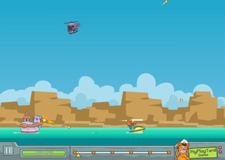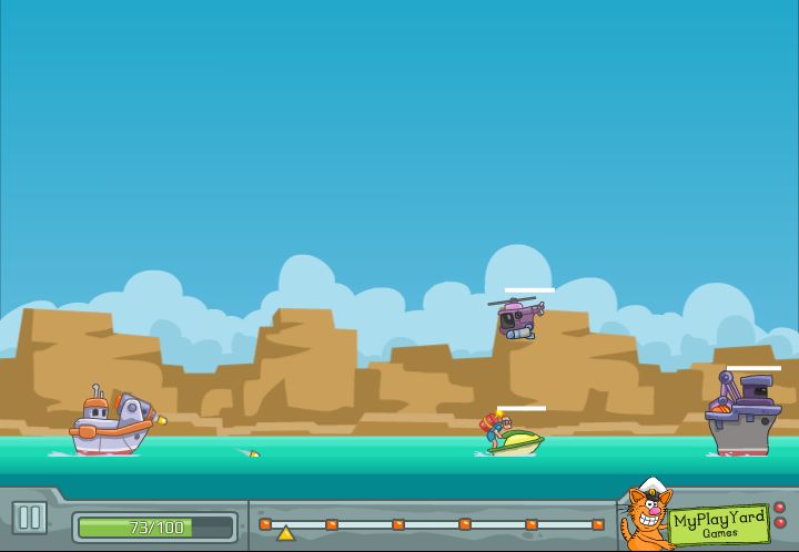 Для того чтобы выручить своего товарища, Фред готов почти на все. Онлайн игра Свободу Фреду подходит для мальчиков. Можно играть без регистрации и бесплатно. Испытания героев начинаются. Вы находитесь на боевом корабле. У вас в распоряжении пушки с ядрами. Благодаря неотъемлемым составляющим можете атаковать цели противника в водном пространстве. Постарайтесь уничтожать все объекты, которые можете увидеть на своем пути. Дело в том, что враждебные защитные редуты расположены таким образом, чтобы вам нужно было их уничтожать поочередно. Затем вы сможете подобраться к своей цели. Флеш аркада запускается бесплатно и не требует регистрации.