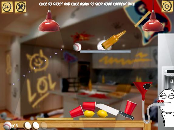 Действительно нескучная флеш игра WTF стрелялка – это история об удивительной и сложной конструкции для пивных вечеринок. Она обязательно станет для мальчиков лучшим способом развлечь себя и применить свои познания в физике в этой онлайн игре. Два скучающих друга создали механизм для нескучного употребления напитков, но до ума довести ее не смогли. Задача игрока – бесплатно помочь им в усовершенствовании конструкции. Начните научные изыскания в области технологичного употребления пива без регистрации уже сейчас!