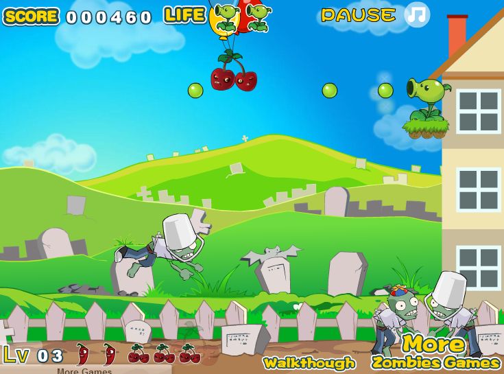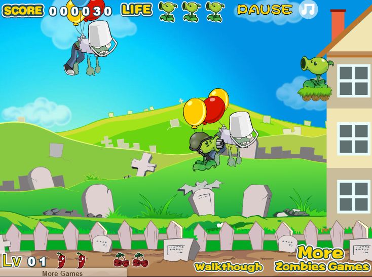 Необычное развлечение для детей, которые любят игры про Злые зомби – потрясающе интересная онлайн игра на меткость. Невероятное событие! Зомби научились использовать воздушные шарики, и устремились к дому. Спастись можно бесплатно и без регистрации, но для этого нужно расстреливать злые зомби перчиками и вишенками. Не дайте зомби ступить на землю, иначе они уничтожат ваше живое орудие!